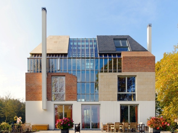 รูปแบบอาคาร สร้างขึ้นตามแบบบ้านในศตวรรษที่ 17 ตกแต่งโดดเด่นสะดุดตาด้วยการเลือกใช้วัสดุที่หลากหลายมามิกซ์ผสมกัน ทั้งอิฐสีน้ำตาลแดง ไม้ ปูน และกระจก มารวมกันอย่างลงตัว ทำเป็นบล็อก ได้อย่างโดดเด่น สะดุดตาสุดๆ ไปเลยล่ะค่ะ นอกจากภายนอกจะเก๋ไก๋ไม่เหมือนใครแล้ว ภายในตัวบ้านยังตกแต่งแบบร่วมสมัยผสมกับสไตล์อุตสาหกรรมได้อย่างสวยงาม เห็นแล้วน่าอยู่ไม่เบาเลยล่ะค่ะ ใครที่กำลังมองหาแบบบ้านเก๋ๆ ไม่เหมือนใคร สวย และน่าอยู่ล่ะก็ เราก็หวังว่าไอเดียแต่งบ้านคฤหาสน์หลังนี้ จะช่วยสร้างแรงบันดาลใจดีๆ ให้กับคุณได้ไม่มากก็น้อยนะคะ
