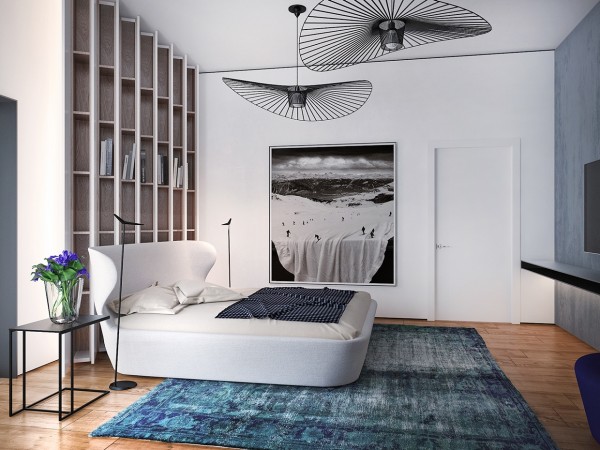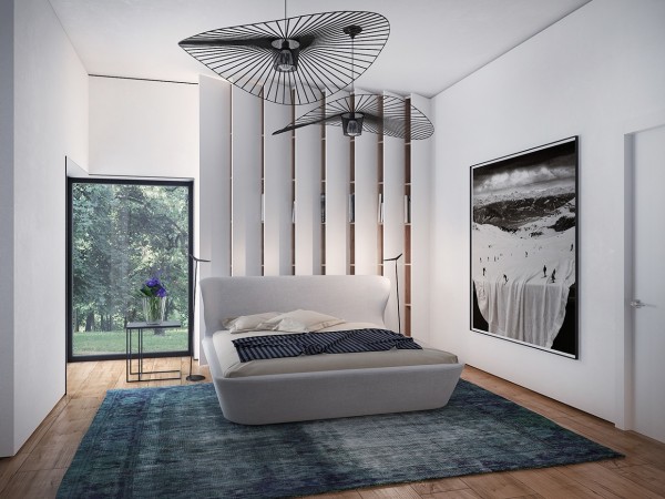 ห้องนอนแต่ละห้องที่ Pavel Voytov ออกแบบตกแต่งนั้น ก็ทำได้อย่างสวยงาม น่าอยู่ แต่ละห้องจะมีโคมไฟดีไซน์โมเดิร์นบ้าง อาร์ตบ้างตกแต่งอยู่ในทุกห้อง มีบานหน้าต่างให้แสงสว่างส่องเข้ามาภายในห้องได้อย่างทั่วถึง มีเตียงนอนที่ทันสมัย สิ่งอำนวยความสะดวกสบายภายในห้อง โทรทัศน์ มุมโต๊ะทำงาน ตู้หนังสือและภาพวาดศิลปะสวยๆ ขนาดใหญ่ติดอยู่ตามผนังกำแพง ตกแต่งออกมาได้อย่างสวยงาม