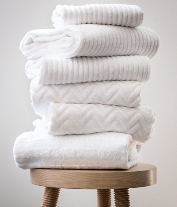 1. ตกแต่งภายในห้องน้ำด้วยผ้าขนหนูสีขาว พับวางซ้อนกันเป็นระเบียบ หรือจะสีพื้นอื่นๆ พับเรียงกันอย่างสวยงามก็ได้
