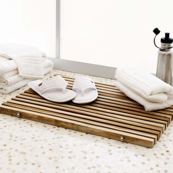 8. เพิ่มบรรยากาศให้เหมือนอยู่ในห้องน้ำเป็นอยู่ที่สปามากขึ้นไปอีกด้วยการหาแผ่นไม้สำหรับวางหน้าบริเวณประตูด้านในห้องน้ำ ให้รู้สึกเหมือนเรากำลังก้าวเท้าเข้าสู่ห้องสปาจริงๆ