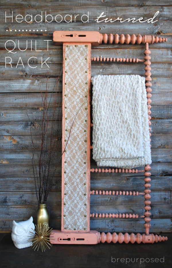 Cr : http://www.brepurposed.com/2014/10/15/headboard-turned-quilt-rack/