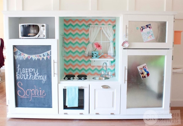 ไอเดียที่ 9 เปลี่ยนเฟอร์นิเจอร์ตู้วางทีวีเป็นห้องครัวของเล่นให้กับเด็กๆ