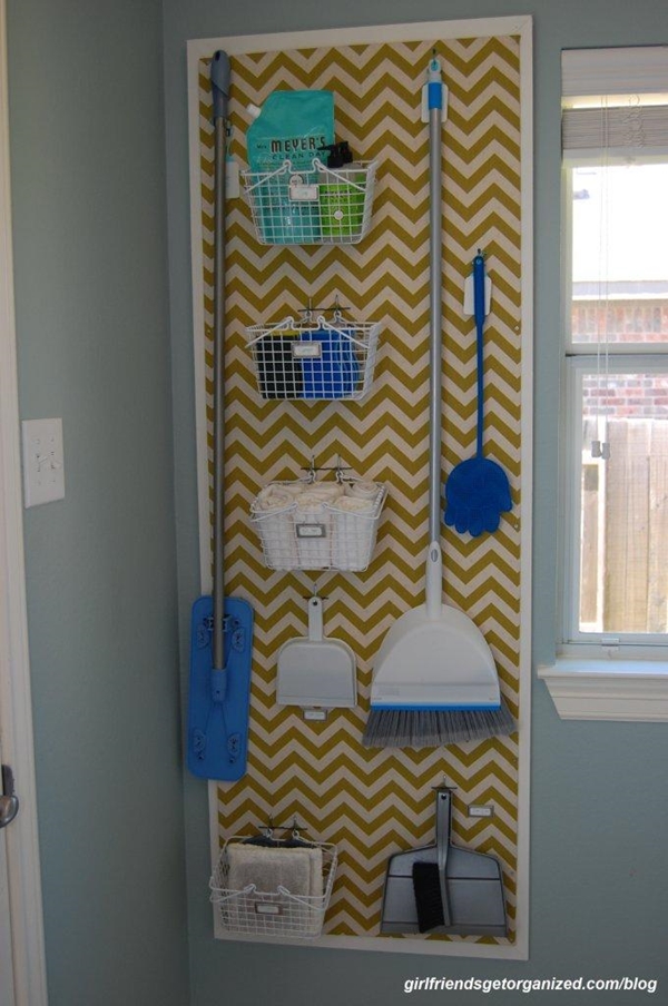 ไอเดียที่ 11 DIY บอร์ดเก็บอุปกรณ์ทำความสะอาดต่างๆ ในห้อง