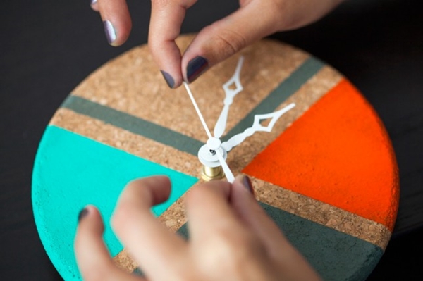 ไอเดียที่ 11 เอาไม้ก๊อกมาทำเป็นนาฬิกาได้ด้วยนะ ตัดแผ่นไม้ก๊อกให้เป็นวงกลม ตกแต่งระบายสีลงบนไม้ก๊อกตามที่ชอบ จากนั้นก็วัดจุดศูนย์กลางให้เรียบร้อย จากนั้นก็เจาะรูตรงกลาง หาตัวเครื่องนาฬิกามาใส่และใส่เข็มนาฬิกาให้เรียบร้อย เมื่อใส่ถ่าน นาฬิกาเดิน แล้วนำไปตกแต่งกำแพง เท่านี้ก็ได้นาฬิกา DIY สุดเก๋แต่งบ้านด้วยฝีมือเราแล้วค่ะ
