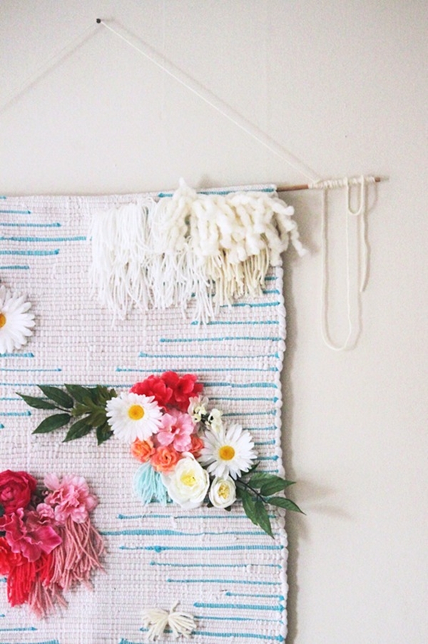 วิธีที่ 13 จากพรมเช็ดเท้า พอเอามาแขวนติดกำแพง หาดอกไม้ปลอมมาประดับสักหน่อย ก็ดูสวยเหมือนกันนะเนี่ย