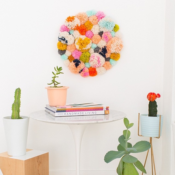 วิธีที่ 3 เอาปอมปอมหลากสีสันมาตกแต่งกำแพงให้สวยงามแบบนี้ ก็ทำให้บ้านดูสดใสร่าเริงดีทีเดียว