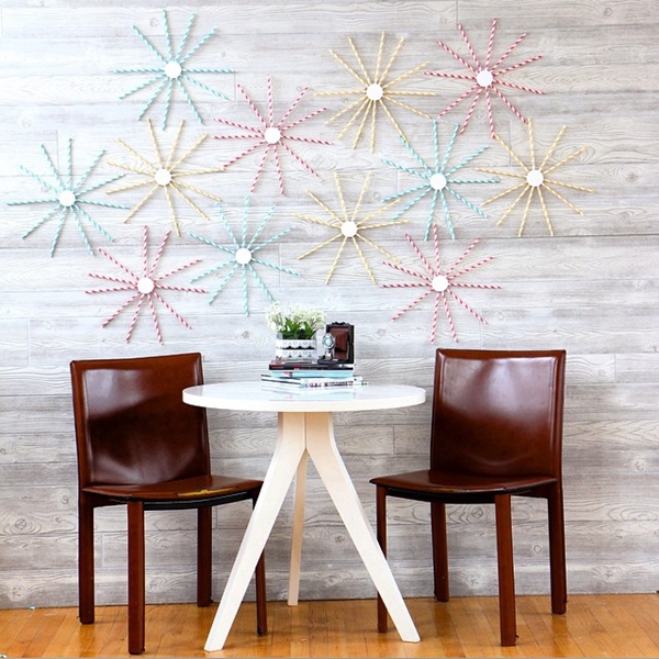 วิธีที่ 5 หรือจะเอาหลอดดูดน้ำมาทำเป็นงานอาร์ตๆ สวยงามแบบนี้แต่งกำแพงก็ได้