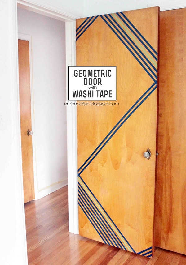 Cr : http://crabandfish.blogspot.com/2012/05/washi-tape-geometric-door-design.html