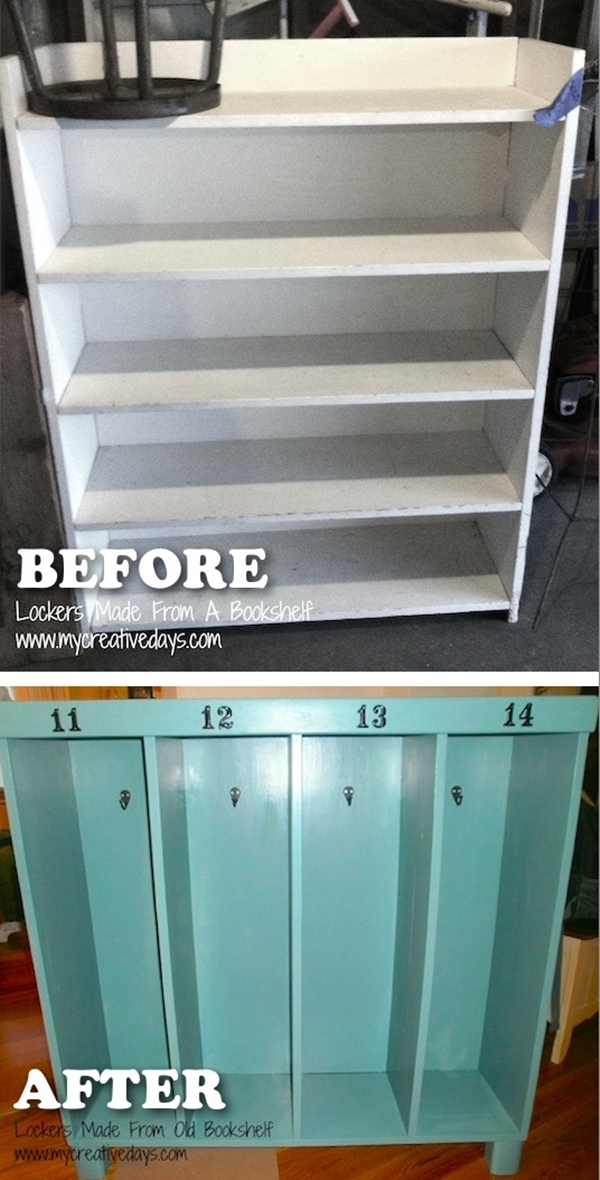 18. ชั้นหนังสือ พอกลับด้าน ทาสีใหม่ให้สวย ติดตัวเลขสักหน่อยและหาตะขอมาแขวนกลายเป็นล็อกเกอร์เก็บรองเท้า หรือ สิ่งของอื่นๆ ใช้งานต่อได้เลย