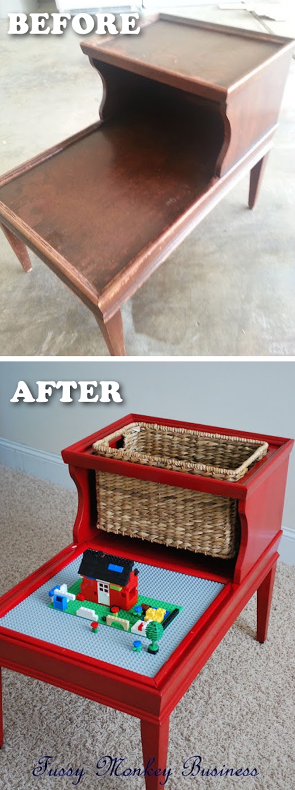 6. เฟอร์นิเจอร์ไม้ธรรมดา ดูไม่ชิค ไม่ทันสมัย เปลี่ยนใหม่ล่ะกัน ทำเป็นเฟอร์นิเจอร์สุดครีเอทีฟ สีสันสดใส แถมมีที่เก็บของและที่เล่นเลโก้ให้น้องๆ หนูๆ ด้วย