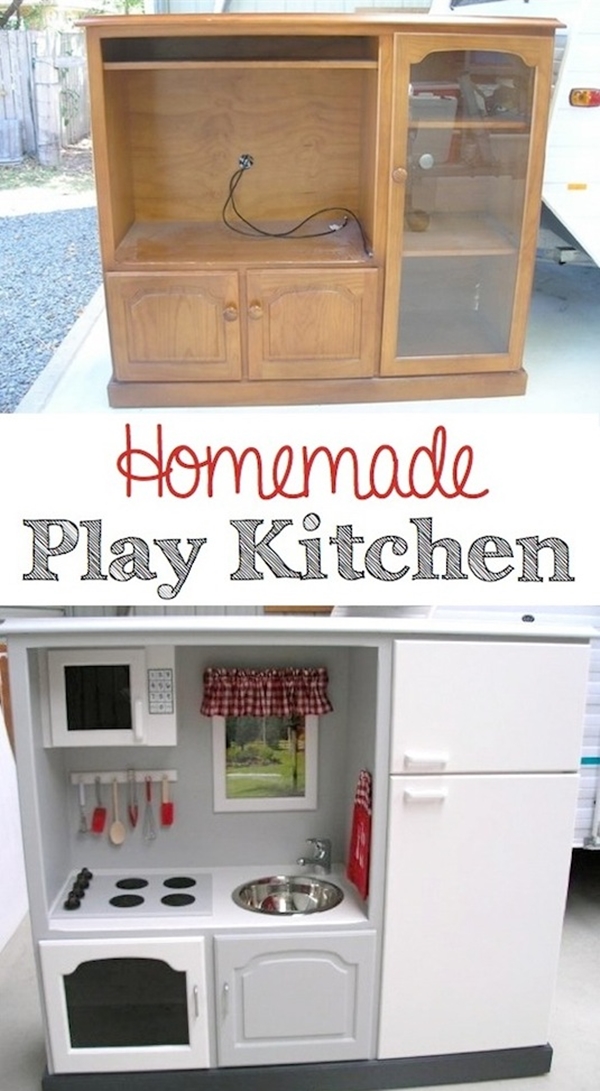 7. ตู้วางทีวีสไตล์นี้ เปลี่ยมใหม่ ทาสีให้ทันสมัยแล้วทำเป็นมินิครัวให้เด็กๆ เล่นซะเลย