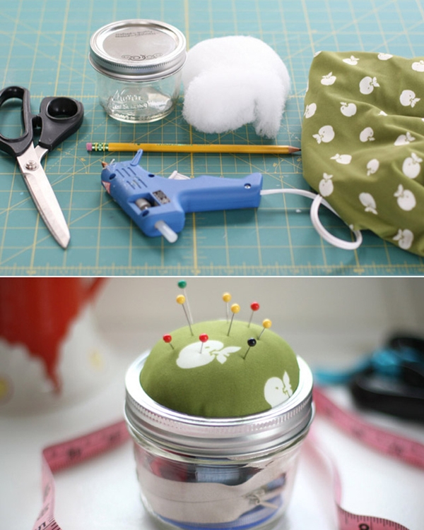 ไอเดียวันที่ 16 : รีไซเคิลขวดโหลเป็นที่ปักเข็มหมุด สำหรับเย็บปักถักร้อยแบบนี้ก็ได้นะ