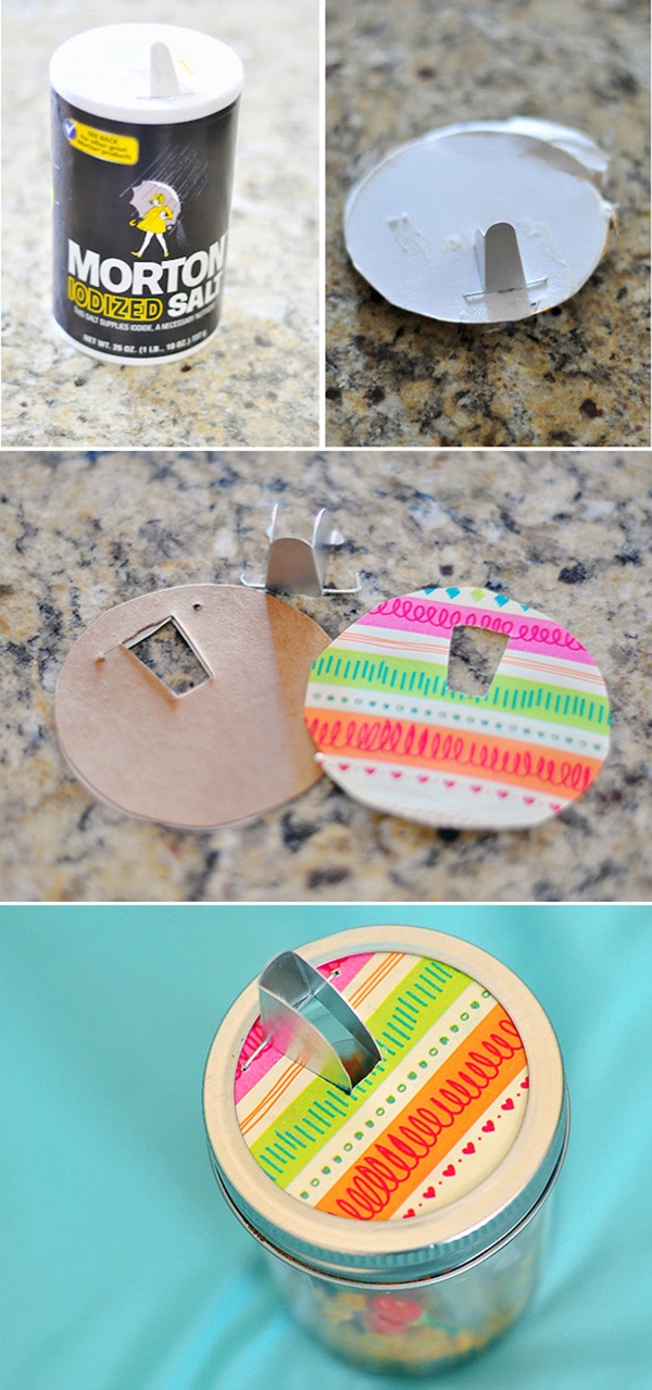 ไอเดียวันที่ 5 : รีไซเคิลขวดโหลให้กลายเป็นขวดเทเครื่องปรุง ด้วยการทำฝาแบบนี้มาใส่แทนฝาปกติก็ได้นะ