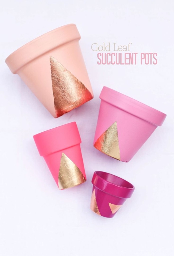 ไอเดียที่ 1 เพ้นท์สามเหลี่ยมสีเมทาลิคสวยๆ ลงบนกระถาง สร้างลายแพทเทิร์นเก๋ๆ ก็ทำให้กระถางดูชิคขึ้นเยอะเลยนะ