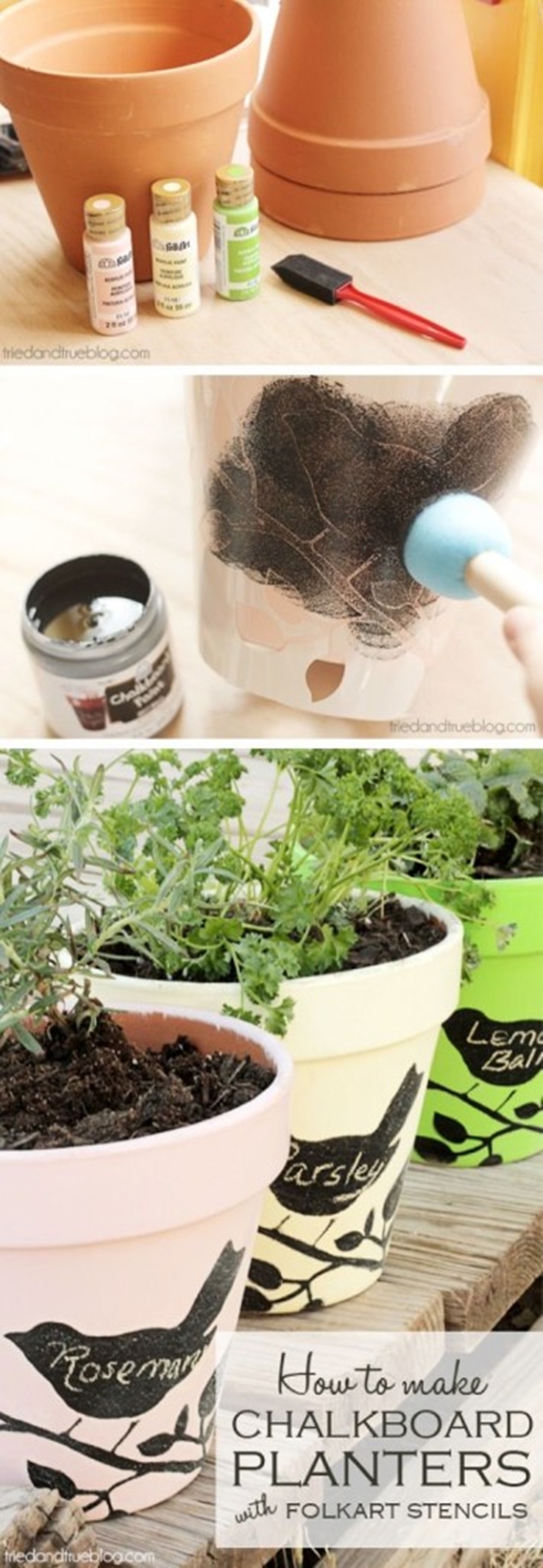 ไอเดียที่ 3 เอาสีกระดานดำมาเพ้นท์กระถางเป็นรูปต่างๆ ก็สวยเก๋ไม่เหมือนใครดี