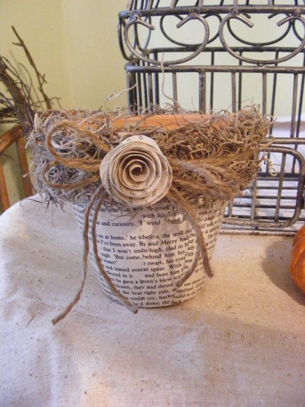 ไอเดียที่ 8 กระดาษหนังสือพิมพ์ห่อกระถางต้นไม้ เติมด้วยงานประดิษฐ์อีกนิด สวยคลาสสิกมากๆ
