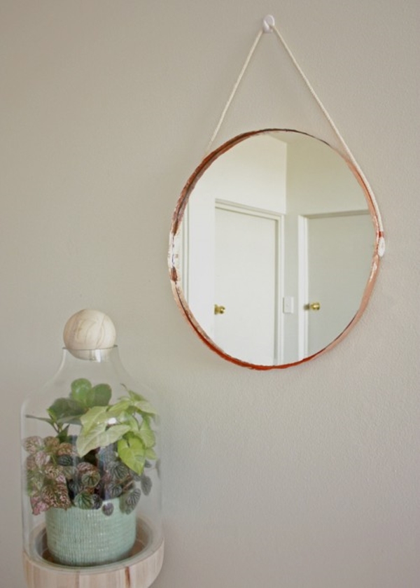 ไอเดียที่ 1 : เอาทองแดงมาเป็นขอบกระจกวงกลมสวยๆ แล้วทำที่แขวนเชือกซะหน่อยก็ดูเรียบเก๋ได้ล่ะ