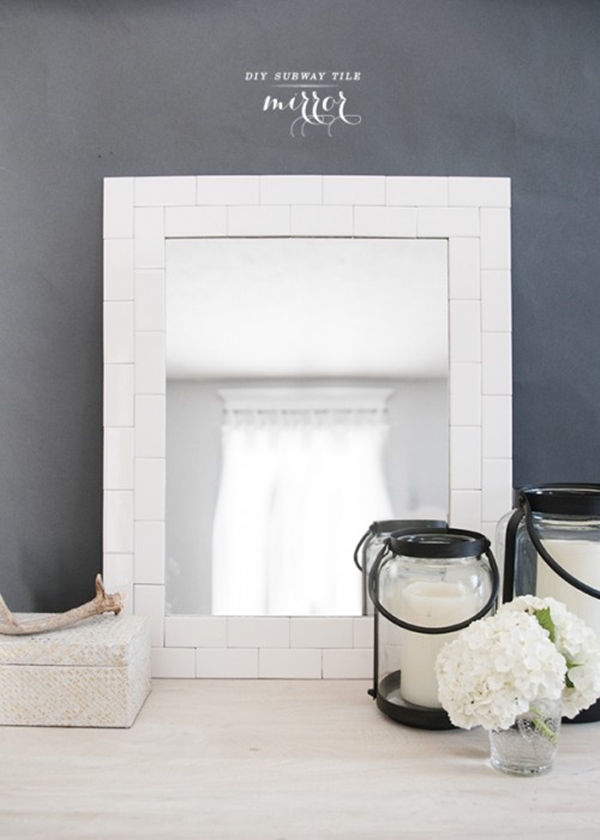 ไอเดียที่ 6 : เอากระเบื้องขนาดเล็กหรืออิฐ มาตกแต่งกำแพงเรียงต่อกันให้กลายเป็นกรอบสวยๆ ของกระจกก็ทำได้นะ