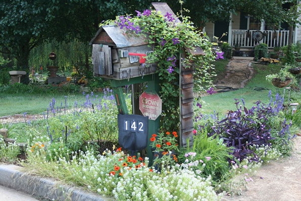 ไอเดียที่ 4 ป้ายบ้านเลขที่หน้าตู้จดหมาย ทำง่ายๆ จากการตัดเอาหัวจอบออกมา แล้วติดเลขบ้านลงไป แค่นี้ ก็เกร๋แล้ว