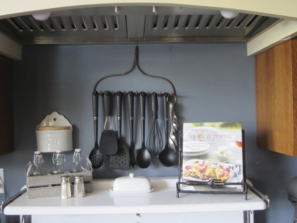 ไอเดียที่ 6 เอาคราดมาทำเป็นที่แขวนอุปกรณ์ เครื่องมือในครัวแบบนี้ก็ได้นะ