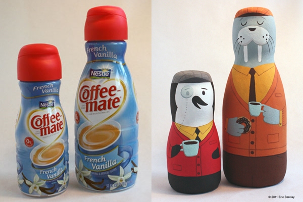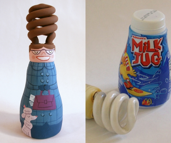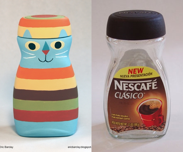ซึ่งในวันนี้ ไอเดียที่เราอยากจะให้คุณได้ชมก็คือ ผลงานของ Eric Barclay ที่ได้นำเอาขวดโหล กระป๋องน้ำอัดลม ขวดคอฟฟี่เมท ขวดมัสตาร์ด และอื่นๆ ที่ใช้หมดแล้ว นำกลับมารีไซเคิลใหม่กลายเป็นของแต่งบ้านอาร์ตๆ ออกแบบและระบายสี ตกแต่งให้เข้ากับรูปทรงของขวดต่างๆ เสร็จแล้วก็นำไปตั้งโชว์ตกแต่งบ้าน ซึ่งนับว่าเป็นไอเดียที่ไม่เลวเลยทีเดียวค่ะ เห็นแล้วเราก็อยากบอกว่าใครที่คิดว่าที่บ้านตนเองมีขวดเหล่านี้กันเยอะแยะ จนคิดว่ามีแต่ขยะ ลองเปลี่ยนความคิด แล้วนำมาเติมแต่งสีสัน ใช้จินตนาการ ออกแบบวาดภาพให้กลายเป็นงานศิลปะตั้งโชว์ในบ้านกันดูสิคะ ไม่แน่นะ จากที่เคยคิดว่ามีขยะเยอะ บ้านของคุณอาจจะมีผลงานศิลปะเยอะขึ้นแทนก็ได้