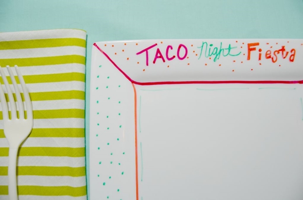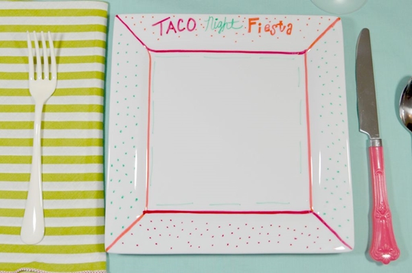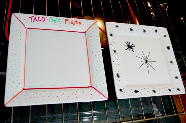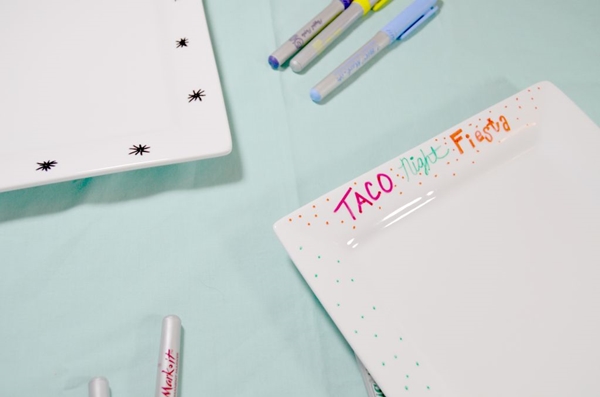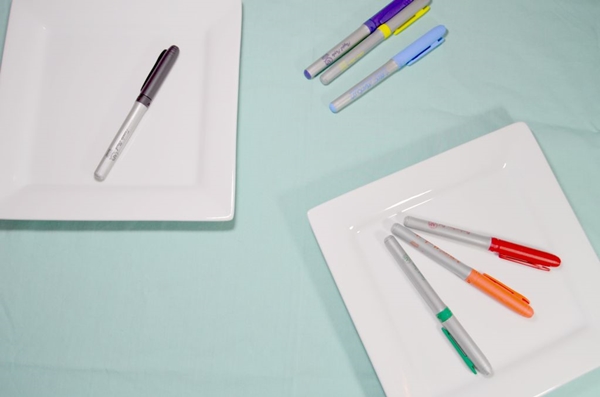 STEP 1 เอา Sharpie สีต่างๆ ที่เราชอบ มาวาดลายลงไปบนจาน ครีเอทกันได้ตามใจชอบเลยค่ะ