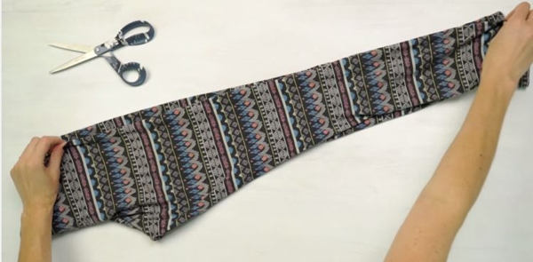 STEP 1 เอากางเกงเลกกิ้งที่เตรียมไว้มาพับครึ่งแนวยาว