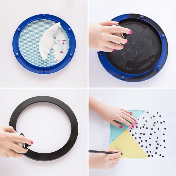 2.หลังจากได้ส่วนประกอบของนาฬิกาทั้งหมดแล้ว ก็ให้ลอกกระดาษลายบนหน้าปัดนาฬิกาออก จากนั้นใช้สีสเปรย์ฉีดพ่นลงไปบนนาฬิกาเรือนเดิม แล้วเอากรอบของนาฬิกามาวัดลงบนกระดาษลายแพทเทิร์นที่เตรียมไว้ด้วยดินสอ