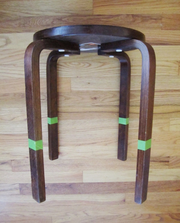 STEP 2 วัดจากขาเก้าอี้ขึ้นมาประมาณ 7 นิ้ว หรือความสูงตามที่ต้องการ จากนั้นใช้เทปแปะมาร์กลงไป เพื่อกำหนดบริเวณในการเพ้นท์สีได้อย่างเรียบร้อย