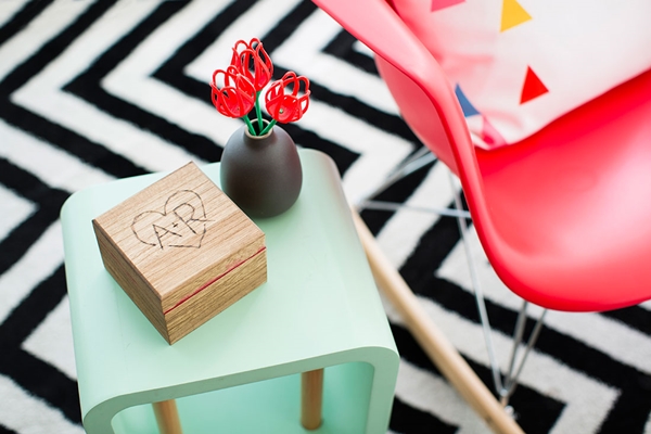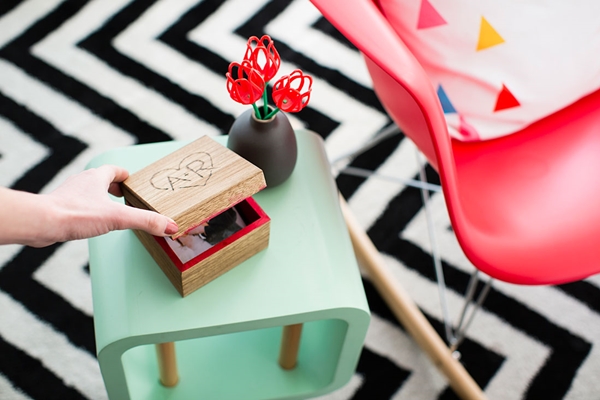 STEP 2 เมื่อแห้งแล้วใช้ที่แกะสลักไม้ แกะสลักข้อความด้านบนฝากล่องไม้กันค่ะ อาจจะตกแต่งเป็นชื่อเรากับคนรัก หรือ หากใครไม่ชอบวิธีแกะสลักไม้ ก็อาจใช้เป็นการระบายสีสัน เพ้นท์รูป หรือ เขียนข้อความต่างๆ ลงบนฝากล่องแทนก็ได้
