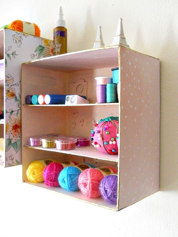DIY งบไม่ต้องเยอะ ก็ทำชั้นเก็บอุปกรณ์เย็บปักถักร้อยน่ารักๆ จากกล่องกระดาษ