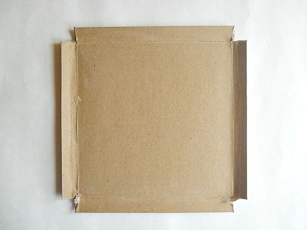 STEP 1 นำเอาฝากล่อง พลิกกลับด้านแล้วใช้คัตเตอร์ตัดบริเวณมุม เพื่อให้บริเวณสันกล่องแบนลง ๖(เหมือนในภาพแรก) จากนั้นก็ตัดแบ่งบริเวณกระดาษกล่องตรงกลางให้กลายเป็นสองชิ้น (ในภาพที่สอง)