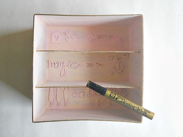 STEP 5 ใช้ปากกาเมจิกสีทองทาลงบนสันขอบของกระดาษทั้งหมด