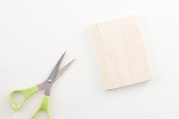 STEP 3 จากนั้นนำแผ่นไม้อัดที่ตัดเท่ากับหน้าปกสมุดบันทึกแล้ว มาทากาวติดลงไปบนหน้าปกเดิมของสมุดบันทึก โดยใช้กาวสองหน้า หรือ กาว UHU แบบหลอด และรอให้กาวแห้ง