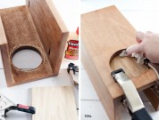 STEP 4 นำเอากาวติดไม้ บีบลงไปบริเวณด้านใต้ของแผ่นไม้ที่เป็นหลุม แล้วใช้แผ่นไม้อีกแผ่นที่เหลืออยู่ติดลงไป