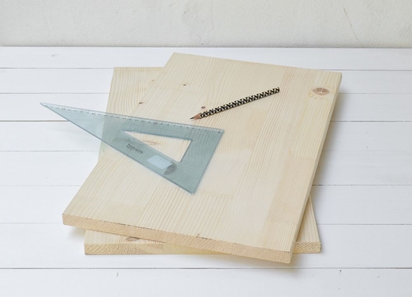 1.แผ่นไม้สี่เหลี่ยมผืนผ้า 2 แผ่น ขนาดเท่ากัน