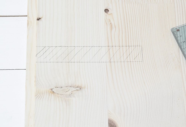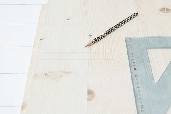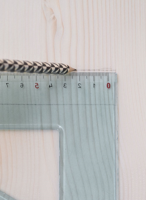 STEP 1 ใช้ไม้บรรทัดวัดบริเวณขอบด้านข้างของแผ่นไม้ว่ามีขนาดเท่าไหร่ จากนั้นนำไปหารสอง จดค่าที่ได้เอาไว้ แล้ววัดแผ่นไม้จากด้านล่างขึ้นไปด้านบน หาบริเวณตรงกลาง ใช้ดินสอลากเส้นตรงเอาไว้