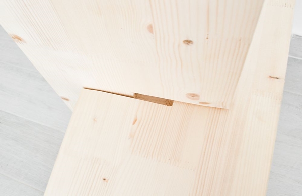 STEP 4 นำเอาแผ่นไม้ทั้งสองอันมาสอดขัดกัน จะได้เป็นที่วางแมกกาซีนเก๋ๆ ตัว X แนวมินิมอลที่เราตั้งใจทำกันแล้วค่ะ
