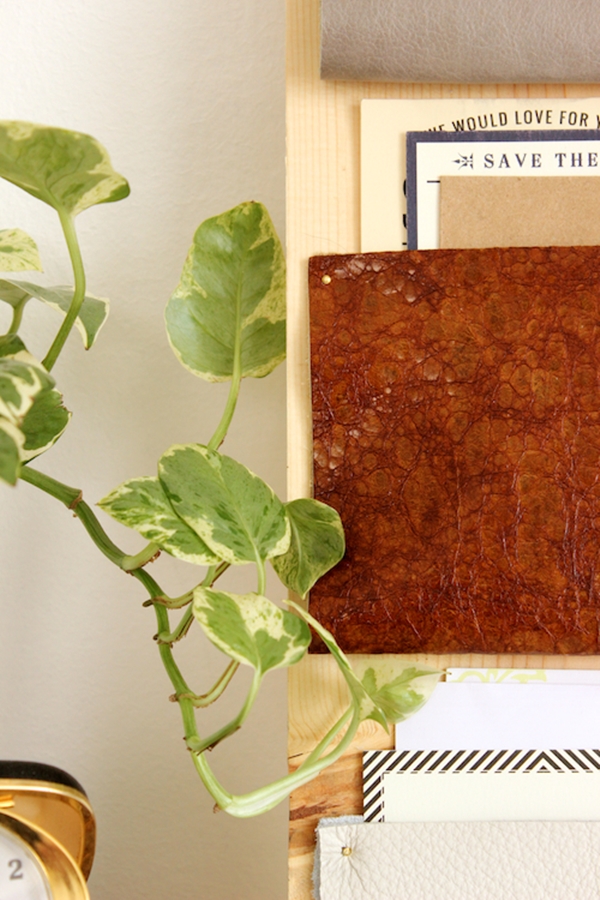 STEP 3 ทำซ้ำ STEP 1 และ 2 อีกครั้งในแผ่นหนังสีน้ำตาลและสีขาว เท่านี้ก็จะได้บอร์ดเก็บเอกสารสไตล์มินิมอล สวยๆ กันแล้วล่ะค่ะ เอาไปติดไว้ที่กำแพง หรือ ตั้งไว้ที่โต๊ะทำงาน ก็เสร็จเรียบร้อยแล้วล่ะค่ะ