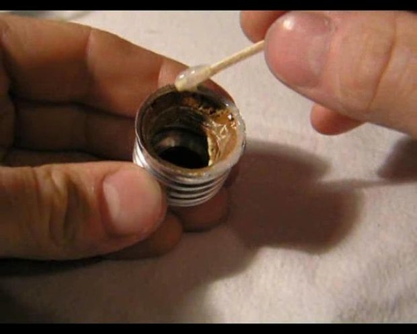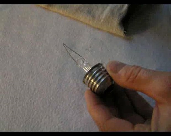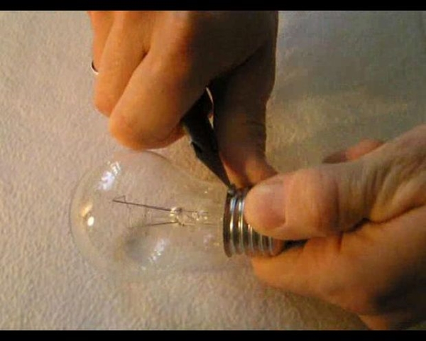 STEP 7 ทากาวบริเวณขั้วโลหะของหลอดไฟ แล้วติดกลับเข้าไปให้มีลักษณะเป็นหลอดไฟดังเดิม