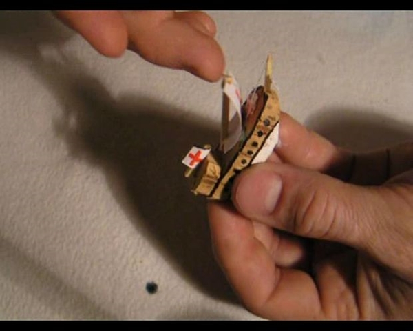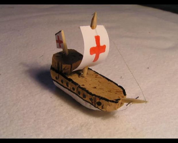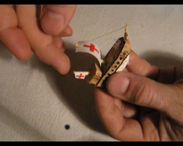 STEP 6 ใช้ไม้ลูกชิ้นในการดันให้เรือสำเภาด้านในตั้งตรง ในตำแหน่งที่เราต้องการ