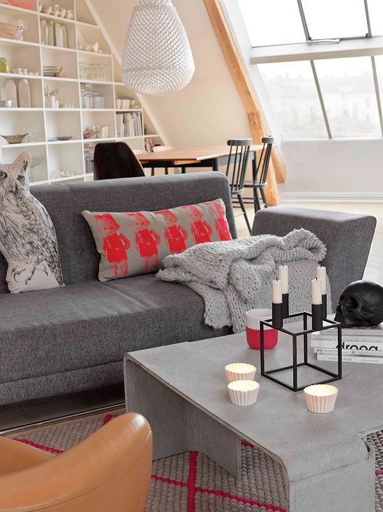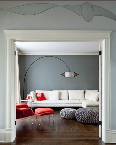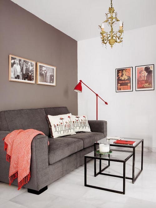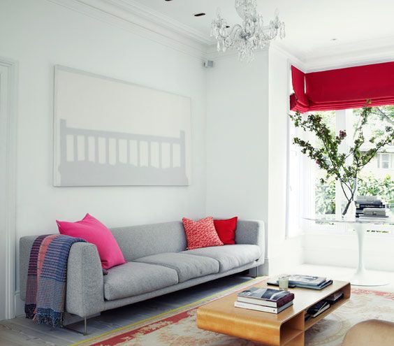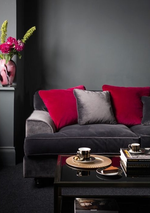 สีแดง-เทา เป็นอีกหนึ่งคู่สีที่เมื่อนำมามิกซ์แอนด์แมทตกแต่งอยู่ภายในบ้านแล้วสวยงาม สดใส อีกทั้งยังดูสง่างามอย่างบอกไม่ถูก สีแดงเป็นโทนสีร้อน ขณะเดียวกันพอมาจับคู่กับสีเทาในโทนสีเย็น ทำให้ภาพรวมในบ้านไม่ดูร้อนหรือเย็นมากจนเกินไป เรียกได้ว่าดึงโทนสีกลับอยู่ในจุดที่พอดี