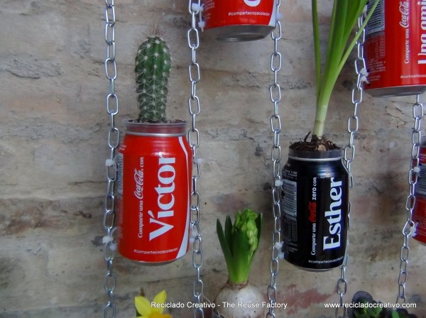 เป็นอย่างไรบ้างคะไอเดียนี้ เราก็หวังว่าจะถูกใจใครหลายๆ คนกันเลยน๊า… ส่วนใครที่ไม่มีกระป๋องโค้กเป็นชื่อตัวเองแบบนี้ล่ะจะทำอย่างไร ก็อยากทำบ้าง แต่ไม่ได้เก็บกระป๋องเอาไว้ ตอนนี้ก็หมดแคมเปญไปแล้วเสียด้วยสิ ถ้าอย่างนั้นก็ประยุกต์แบบนี้กันดูนะคะ ใช้วิธีทำเดียวกันกับที่เรากล่าวไปด้านบน จะใช้กระป๋องน้ำอัดลม น้ำอะไรก็ได้ จากนั้นก็หากระดาษสีมาพันรอบ หรือ พ่นสีและเพ้นท์ตัวอักษรกันลงไป เขียนข้อความ เขียนชื่อคนที่คุณรัก และจัดการตกแต่ง ปลูกต้นไม้ สร้างสวนแนวตั้งสวยๆ แบบนี้ในฉบับของคุณกันเองได้เลยค่ะ