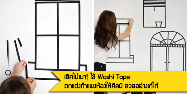 ไอเดียนี้เป็นการตกแต่งกำแพงด้วย Washi Tape หรือเทปตกแต่งที่นิยมใช้ในการประดิษฐ์ โดยเลือก Washi Tape สีดำมาตกแต่งกำแพงห้องสีขาวให้กลายมามีกราฟฟิกเก๋ๆ เป็นบานหน้าต่างหลายแบบ ซึ่งเราเชื่อว่าไม่ยากเกินที่คุณจะทำหรอกค่ะ ถึงแม้จะไม่เก่งศิลปะ แต่แน่นอนว่าแปะติดเทปเป็นสี่เหลี่ยม สามเหลี่ยม รูปทรงเรขาคณิตต่อกันเป็นงานศิลป์คงไม่ใช่เรื่องยากสำหรับคุณสักเท่าไหร่ ดังนั้นไอเดียนี้จึงเป็นอีกไอเดียที่น่าสนใจและน่าลองไม่น้อยเลยทีเดียว สำหรับใครที่กำลังมองไอเดียดีๆ ตกแต่งกำแพงห้องสวยๆ กันอยู่ ยังไงก็เก็บการใช้ Washi Tape ตกแต่งกำแพงนี้ไว้เป็นตัวเลือกกันนะคะ และนอกจากจะตกแต่งกำแพงให้สวย มีบานหน้าต่างประดับกันแล้ว ยังสามารถใช้ Washi Tape ตกแต่งเป็นกรอบรูปเก๋ๆ ประดับบ้าน และ งานศิลป์อื่นๆ ได้อีกมากเลยนะคะ ยังไงลองประยุกต์กันดูเลยจ้า