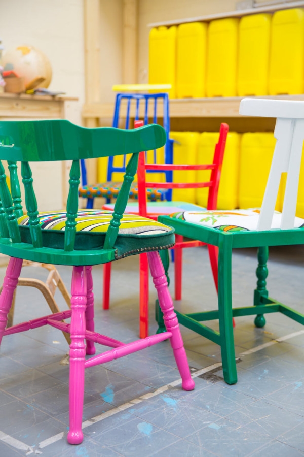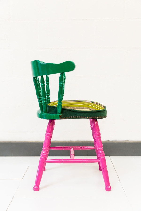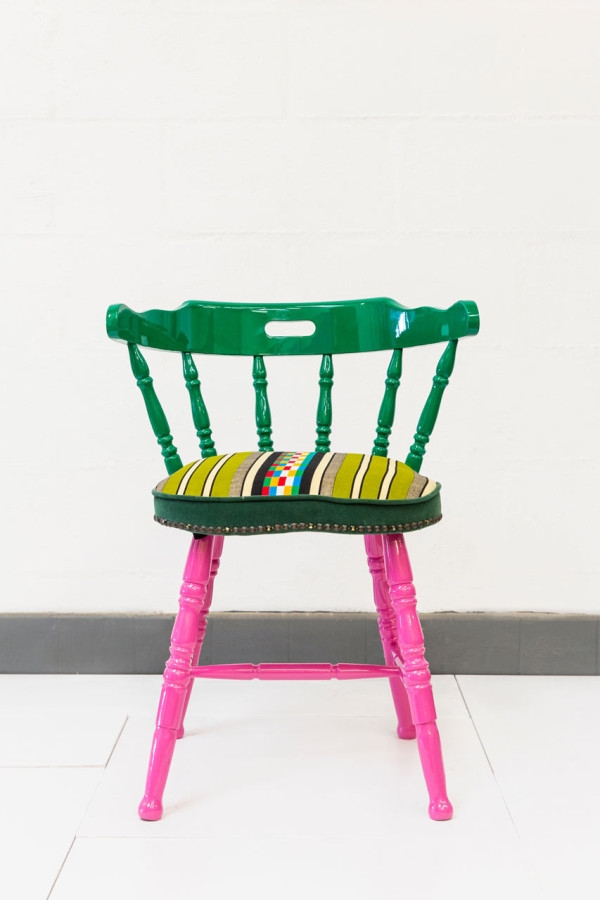 มีไอเดียเฟอร์นิเจอร์เก๋ๆ มาฝากให้ได้ชมกันด้วยค่ะ สำหรับเก้าอี้ตัวนี้ มีชื่อสุดกิ๊บเก๋ว่า ‘If Chairs Could Talk’ เป็นผลงานการออกแบบของ Yinka Ilori ร่วมกับ The Shop at Bluebird ร้านค้าแห่งหนึ่งในลอนดอน ด้วยการนำเอาผ้าพื้นเมืองแอฟริกันและคำสุภาษิตของไนจีเรียมาใช้เป็นแรงบันดาลใจ ออกแบบร่วมกับดีไซน์ของเก้าอี้สมัยเด็กที่เคยนั่ง ทำเป็นเก้าอี้ชิ้นใหม่ที่ดูไฉไลกว่าเดิม เลือกใช้สีสันที่สดใส ทั้งเขียว เหลือง ฟ้า ชมพู ดำ มิกซ์แอนด์แมทกันลงตัว ดูน่ารัก สดใส และร่าเริง