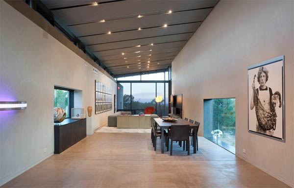 บ้านชั้นเดียวหลังนี้ตั้งอยู่ติดกับทะเลทรายที่แห้งแล้ง ภายในบ้านหลังนี้จึงออกแบบติดตั้งให้เป็นกระจก มีหลังคามุงด้วยสังกะสีแบบยกสูงเหนือระดับฝ้าเพดาน เพื่อจะได้เป็นที่ถ่ายเทอากาศความร้อนได้อีกทางนึง ภายในบ้านตกแต่งในสไตล์เรียบๆ ขรึมๆ ผนังภายในบ้านเลือกใช้โทนสีเทา และผนังบางส่วนใช้แผ่นวีว่าบอร์ดเข้ามาตกแต่งเพื่อให้บ้านดูเท่มากขึ้น บริเวณภายในบ้านจะเห็นภาพวาดงานศิลปะ และเครื่องปั้นดินเผาอยู่ตามโถงทางเดินภายในบ้านให้ความรูสึกเหมือนเข้ามาอยู่ในพิพิธภัณฑ์เลยล่ะคะ