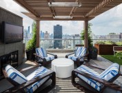 สำหรับที่พักที่เราพาคุณมาชมไอเดียตกแต่งในวันนี้ เป็นห้องหนึ่งในอพาร์ทเม้นท์ที่ชื่อ Laurel ตั้งอยู่ในย่าน Upper East Side ของนิวยอร์ก ประเทศสหรัฐอเมริกา ภายในมีห้องนอนด้วยกันทั้งหมด 3 ห้อง และห้องน้ำ 4.5 ห้อง มีพื้นที่ดาดฟ้าสำหรับพักผ่อน ชมวิวเมืองสวยงาม มีเก้าอี้อาบแดดให้นั่งผ่อนคลายรับลมเย็นๆ ชิลๆ มีพื้นที่ครัวแบบเอ้าท์ดอร์ไว้ทำอาหารด้านนอก เปลี่ยนบรรยากาศด้วยค่ะ แถมยังปลูกต้นไม้ไว้ทั่ว ทำเป็นสวนลอยฟ้าที่สวยงามทีเดียวค่ะ เห็นแล้วร่มรื่น สดชื่นไม่เบา เหมาะกับการออกมาพักผ่อนชิลๆ นอกห้องในวันหยุดจริงๆ