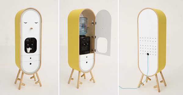 และแบบสุดท้าย เป็นตู้สำหรับใส่เครื่องกดน้ำร้อนและน้ำเย็น และมีลิ้นชักสำหรับเก็บของอื่นๆ แทรกเอาไว้อยู่ด้วย