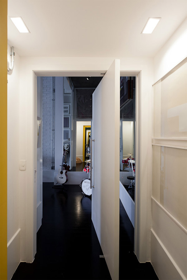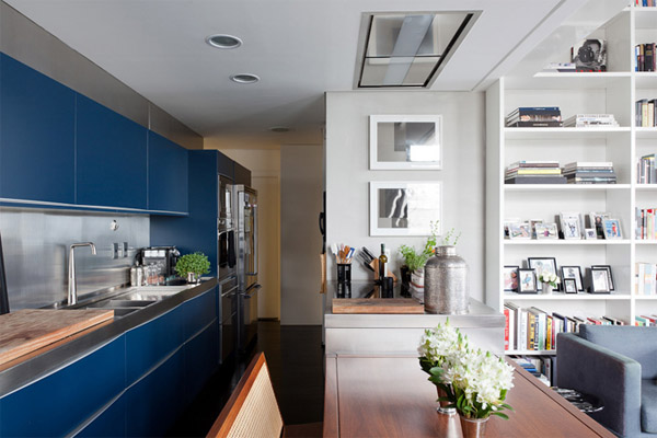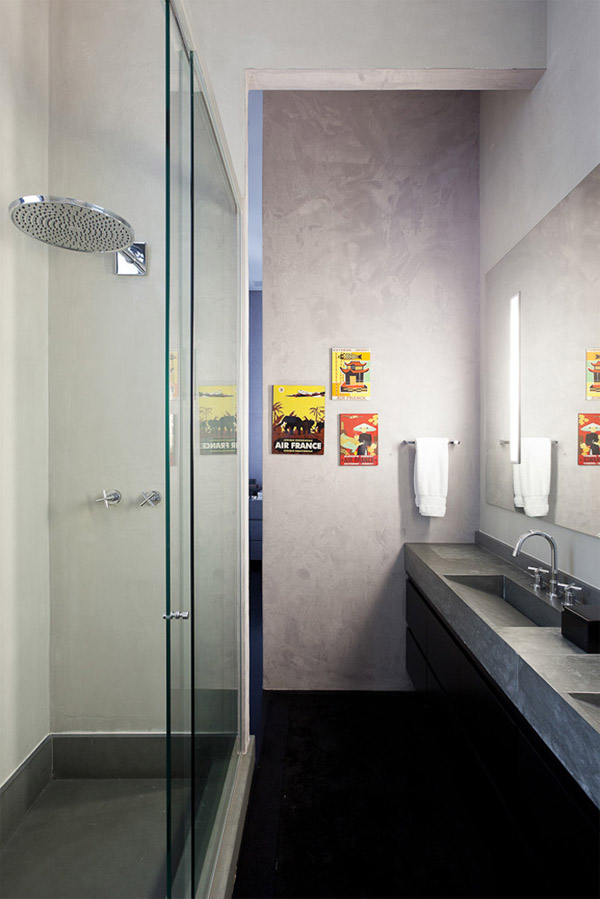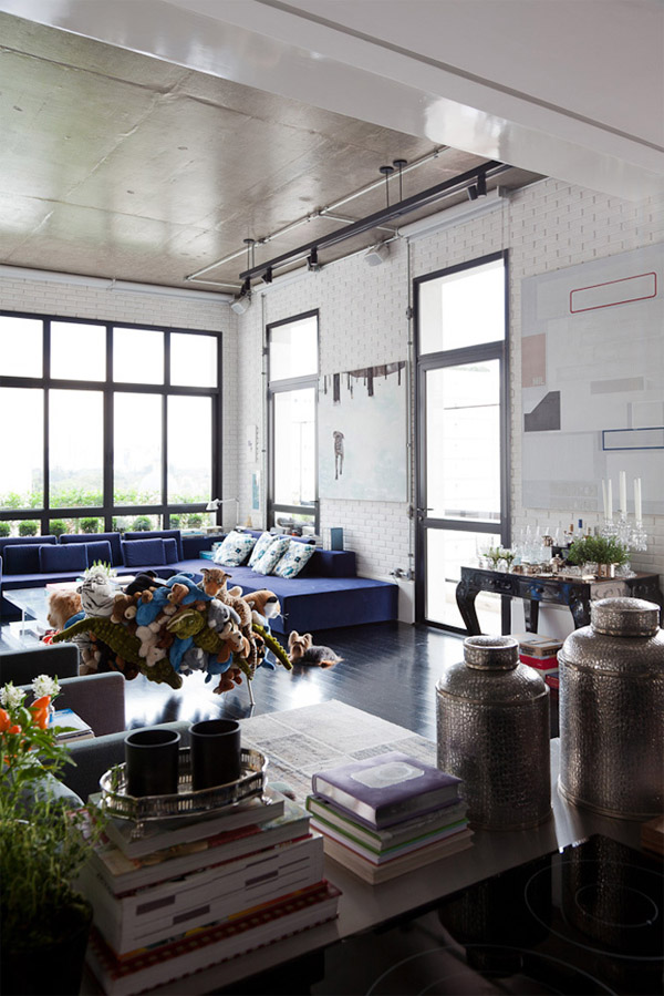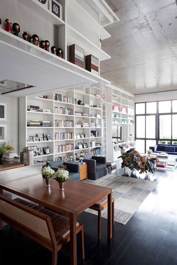วันนี้มีอพาร์ทเม้นท์สวยจากบราซิลมาฝากให้ได้ชมกันค่ะ เป็นการตกแต่งภายในโดยบริษัท FGMF Arquitetos ภายในอพารท์เม้นท์ห้องนี้ตกแต่งในสไตล์ Modern Loft งานเพดาน ผนัง ล้วนเป้นการโชว์ให้เห็นถึงพื้นผิวที่แท้จริงของงานโครงสร้าง ซึ่งทำให้ดูคล้ายโรงงานอุตสาหกรรม แต่เฟอร์นิเจอร์และของใช้ภายในบ้านจะเน้นไปทางโมเดิร์น อาทิเช่นชุดโซฟาเดย์เบด ขนาดใหญ่สีม่วงที่ตั้งอยู่ริมหน้าต่างบานใหญ่ การตกแต่งชั้นวางหนังสือเต็มผนัง ทำให้ทราบว่าเจ้าของบ้านรักการอ่านอย่างแน่นอนค่ะ มีห้องสำหรับเล่นดนตรี เป็นงานอดิเรกที่เจ้าของบ้านชื่นชอบ ส่วนเคาเตอร์ทำครัวตกแต่งในแบบบิ้วอินสีน้ำเงิน ทันสมัย เรียกได้ว่าห้องนี้สวยแบบอาร์ตๆ เหมือนกันนะค่ะเนี่ย