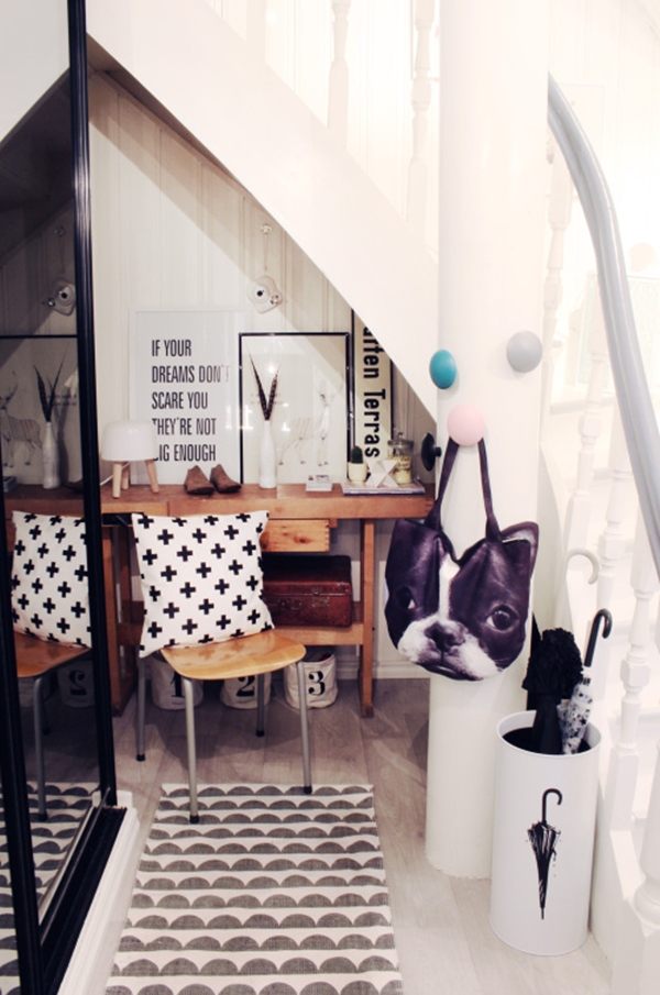 ภายนอกตัวบ้านสีขาว แต่ภายในกลับมิกซ์แอนด์แมทสีขาวและดำให้ได้อย่างลงตัว กำแพงไม้สีขาวเข้ากันได้ดีกับเฟอร์นิเจอร์และของแต่งบ้านสีดำ ยิ่งแซมด้วยสีสันสดใส เหลือง ชมพู ในของตกแต่งบ้านอื่นๆ ด้วยแล้วนั้น ยิ่งทำให้ภายในทาวน์เฮ้าส์หลังนี้ดูน่ารักน่าอยู่ขึ้นไปอีกสเต็ป ของแต่งบ้านที่เลือกใช้ก็ดูชิคได้ใจ ส่วนใหญ่เน้นไปที่รูปการ์ตูนคนและสัตว์ บวกกับแพทเทิร์นลวดลาย ข้อความต่างๆ รูปภาพใส่กรอบ ทำให้บ้านดูน่ารัก ทันสมัย น่าอยู่ไม่เบาเลยล่ะ ว่าแล้วใครที่ชอบไอเดียแต่งบ้านแนวนี้ ก็ลองมาเก็บภาพการตกแต่งไว้เป็นแรงบันดาลใจกันดูได้เลยนะ